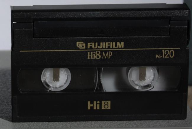 Introduced in 1985 as the "spiritual" successor to the Betamax video tape line, the 8mm tape line, also known as Video8, offered the ability to playback tapes within the camcorder, something that VHS was capable of, however Beta camcorders (despite what the producers of Fringe would like you believe with the many scenes in Fringe Season 5 of someone watching a Beta tape on a Betamovie camcorder) could not playback the video tape. Due to the smaller size that was required, Sony removed the playback heads from the Beta VCR that was built into the Betamovie's. Unfortunately, even with those heads removed, Sony was unable to make a camcorder that did not need to rest on your shoulder. Therefore Sony created the 8mm camcorder that provided an image that was close to Betamax's image, but could be made in a more compact form (eventually creating camcorders that could fit in just the palm of your hand). Using tape that was only a quarter-inch wide (compared to Betamax and VHS's half-inch wide tape), the video was recorded on the entire tape, while the audio and control track were embedded within the video track at a different frequency. For editing purposes this meant that you were not able to edit just the video, audio track 1 or audio track 2 by themselves; you either had to record all at once or none at all---VHS and Betamax's video and audio tracks (aside from the HiFi tracks that were mixed into the video signal) were recorded on their own seperate tracks. In the SP mode, 8mm video owners could record up to 2 hours, while in the LP mode (aka half-speed mode) this could be stretched to 4 hours.